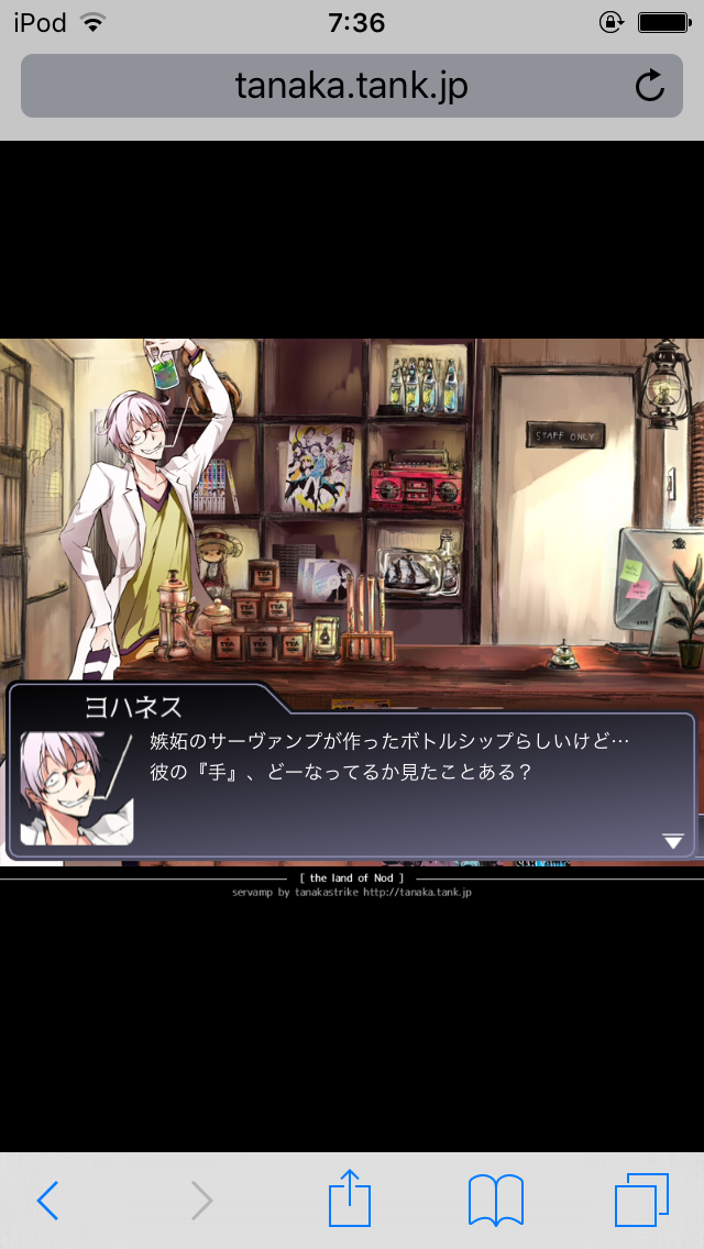 もうね、田中ストライク先生自ら製作されている企画サイトのthe Land of Nod(http://tanaka.tank.jp/nod/)が素晴らしいんですよ。元々ジェジェもとい嫉妬組推しの私は御国さんのお店が凄い気になってて勝手に長編の舞台にしちゃう程だったんすけど、そこにお客として行けるんですよ!しかもロキくんとかクランツさんとか弓ちゃんとかと電話ができるんですよ!