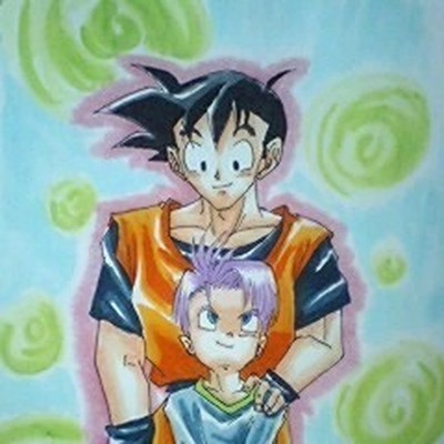 なんとなく、ほんわか描きたくなった! トラ「てかさー、何この背景…」 悟飯「『愛と平和と安らぎ』がテーマだってι」 トラ「欲張り過ぎだろっ、全然そうは見えないし!!」 駄センスすんまそ。 初!!未来師弟!!