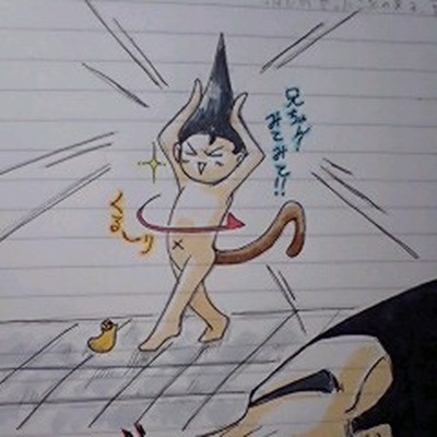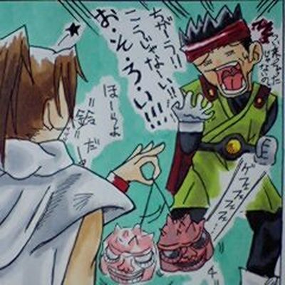 記念イラいじりの2コマ漫画その①。 カカ『兄ちゃん!みてみて!』 ラディ『Σブッ!?』