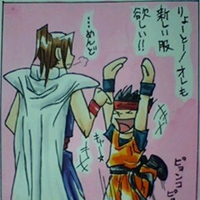 一発描き っていうか悟空を描くのすら久しぶりだったかもι (…やっぱオラ胴着の方がいいなぁ…) なんて(笑) しっかし、これで二児のオトウサン……ぱぱーvV(Σッ)
