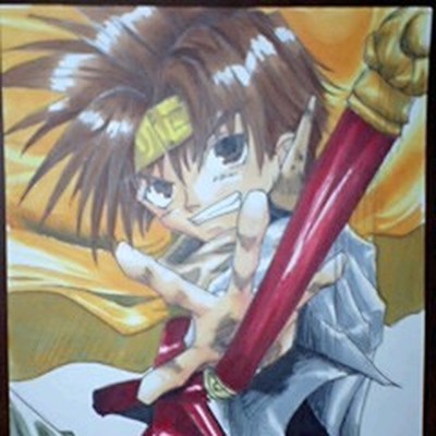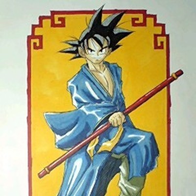 何やら顔のあたりが白くぼやけちゃってますがι? 先の孫悟空カラーです♪ ペン入れしたら目がタレてしまった…!!ιιいや、塗る前から垂れてたけどね!!(自爆)