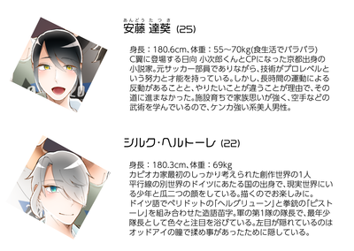 3作品の創作世界と2作品のアニメとゲームの創作キャラを描いてるけど、この時点でヤバさが出ててすげぇんだなと思ったりしてる。