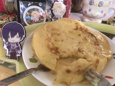 そうユエくんがわくわくする、大きなパンケーキをたくさん食べました。