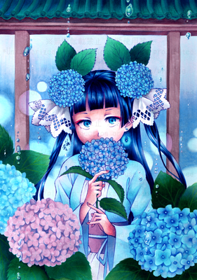 紫陽花と雨