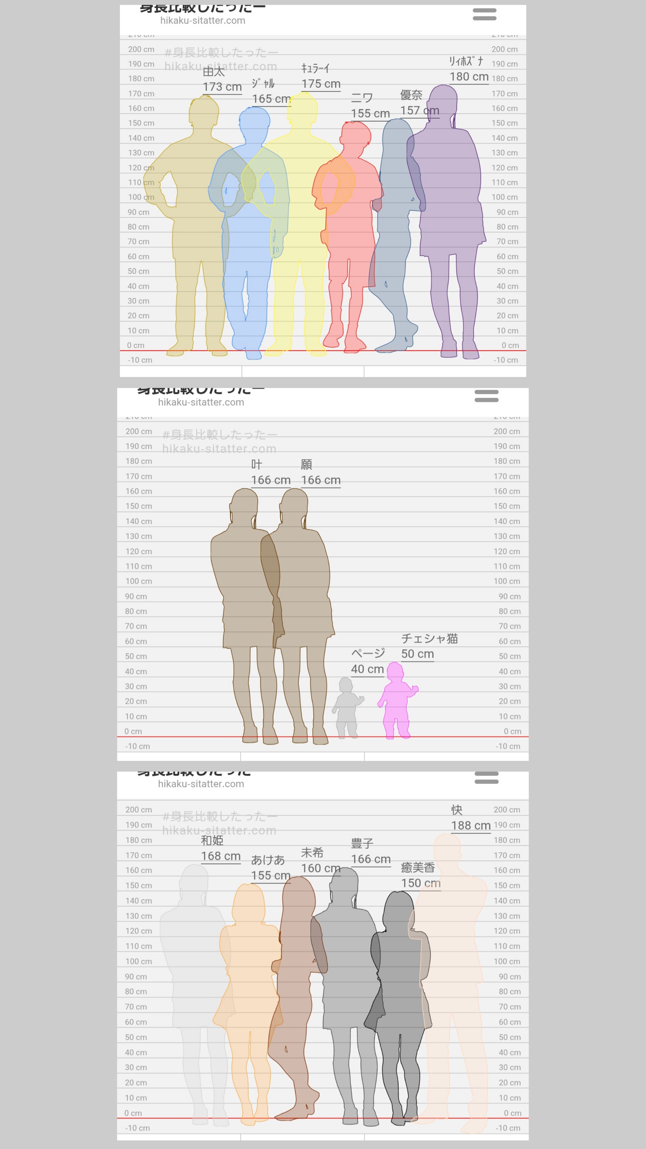 イラストや漫画を描く時、みんなの身長が分からない時は『身長比較したったー』にお借りして描いてます!創作(我が子)