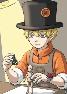 カラクリ人形を作っているヨイヨ君を描きたくて描いちゃいました!