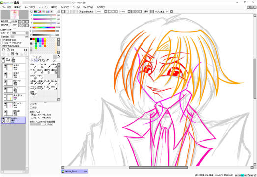 ……ってもまぁ、昨夜はやっぱりしっかり脳機能が落ちている所為でガッツリめの作業が出来る程の集中力みたいな物は存在しなかったので、今回着手したのは今年の上旬から描き続けており飽く迄も本気絵でありエグゼ二次創作である光兄弟誕生日祝い絵2024年Verの続きではなく、比較的最近描き始めたばかりの上に所詮は落書きであり一次創作でもある藤咲 満(タイトル的な物は現状特には無い)の続きだったんだけどな(´・ω・`)