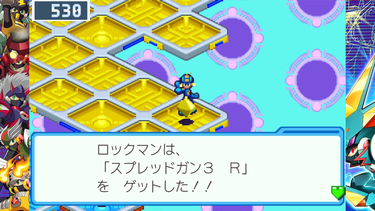 現状、俺がアドコレ(Switch版)で遊んでいるエグゼ6グレイガはシナリオ的にはまだ前半戦の範囲内の筈(VSジャッジマンの途中、キャプテン・クロヒゲの裁判が終わった後辺り)だし、Rコードはナビチップの『ロール』との相性が良い(ロール系のチップコードもR)から、このスプレッドガン3は割と良い感じで使えそうだなww