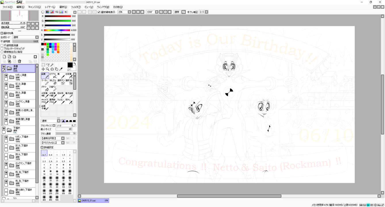 という事で!! 今月の内に『光兄弟誕生日祝い絵@2024年度Ver(※完成する頃には早くとも2025年Verになっている事が確実である)』の「線画」をひとまず完成させる事だけはどうにか達成したぞッ……!!(゜皿゜;)