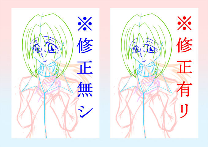 それまでは、以下の修正無し・修正有りの比較画像でも眺めておいてどうぞ( ´Д`)=3 ←