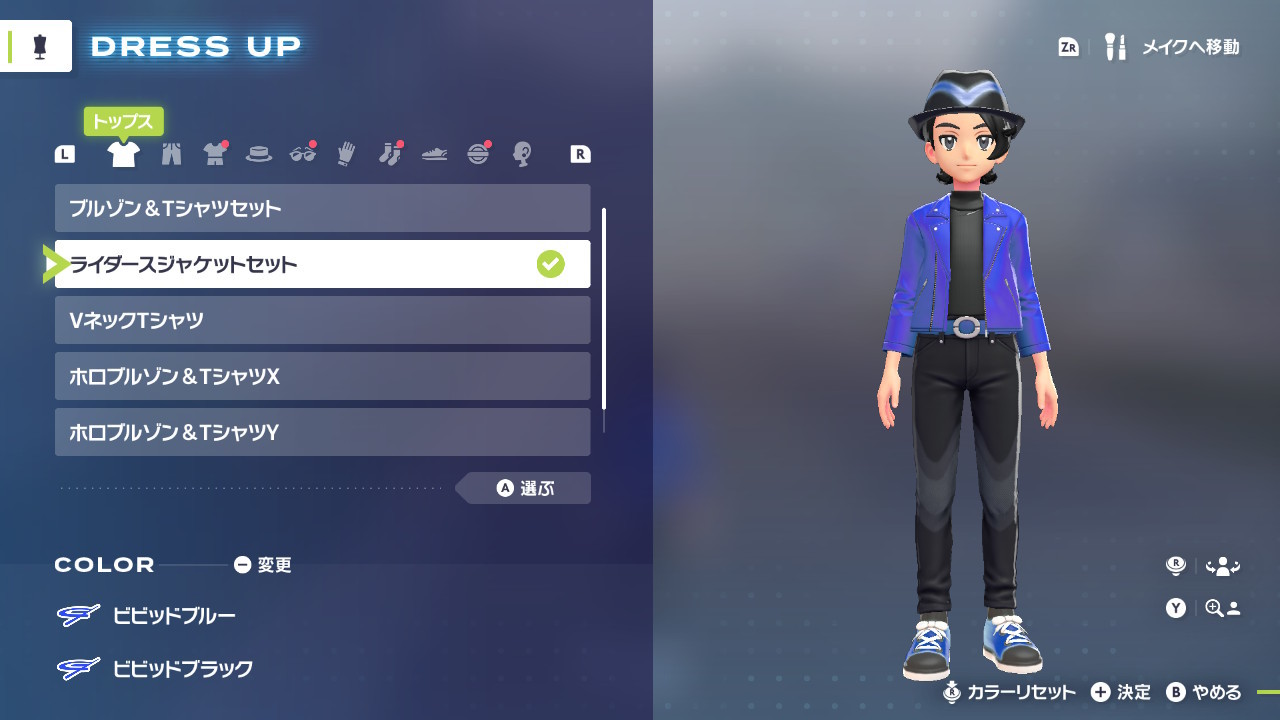 ……それにしても、ポケモンの着せ替えで俺が好む(?)見た目を作ろうとすると何だかんだで上着が『ライダースジャケット』に辿り着く事になるのは一体どういう事なんでしょうかねぇ……とは、剣盾(のソードの方)の時の事を思い出して少々考えてしまう部分のある今日この頃よ……アレも確か上着はライダースジャケットだった筈だからな、という……(´A`)