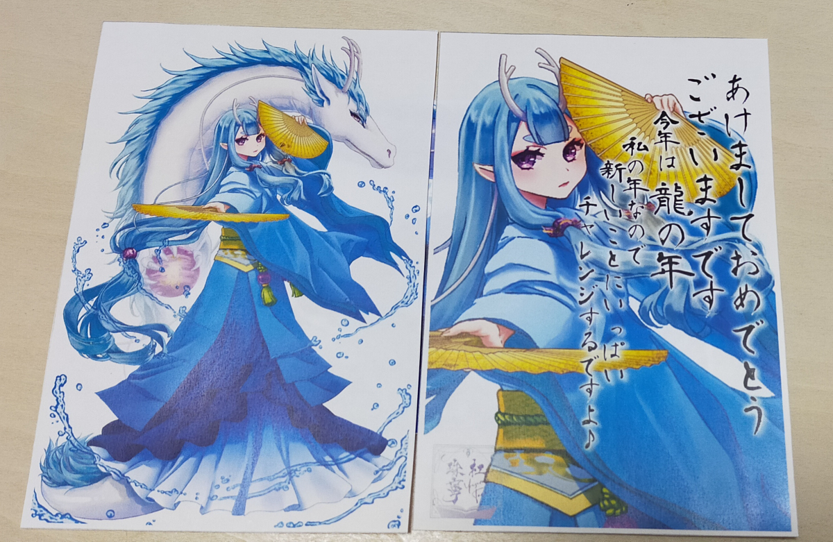 20240102(火)23:31昨年末にご縁をいただき、ご依頼で描かせていただいた年賀イラストのネットプリントをしてきました。