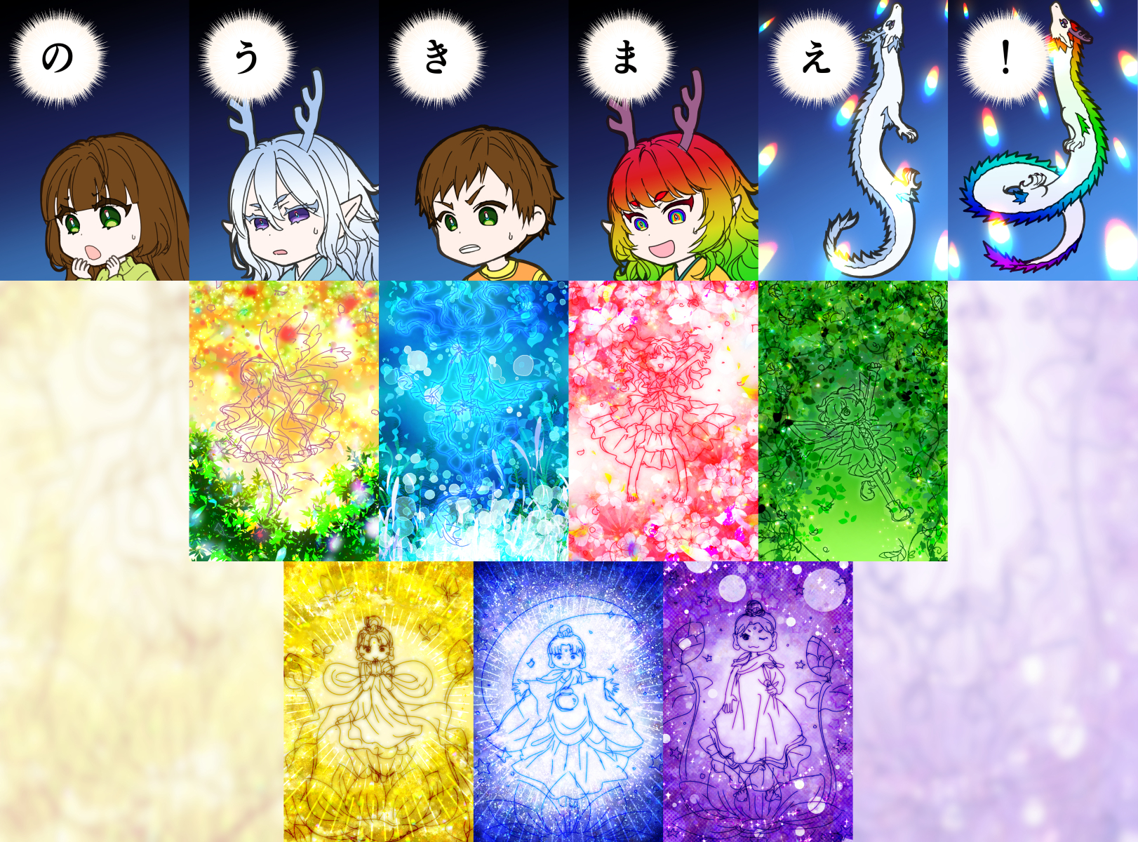25日からはカラー&素材遊び感覚で描き始めた、天使ちゃん・神さま・精霊ちゃんシリーズです。