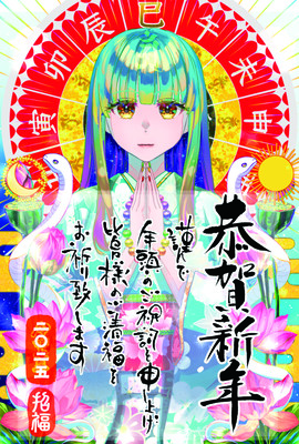 2024年の虹佛に大幅加筆して、年賀絵に相応しいおめでたさを表現した作品です。