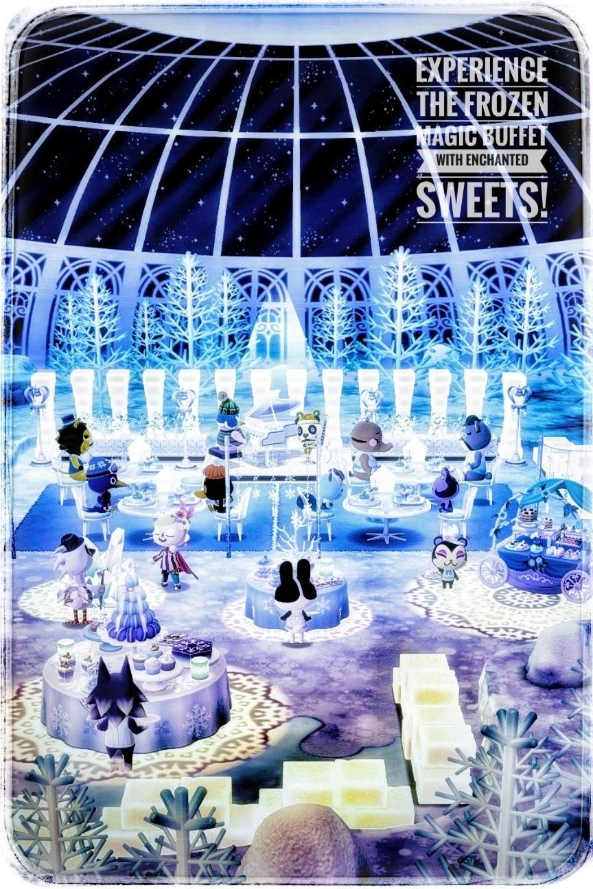 20260124(土)22:36其処のオフィシャルイラストの、両手に扇子のスパムたんがカワイイ!!!!カワイイ!!!!!!!!氷がテーマのビュッフェパーティー