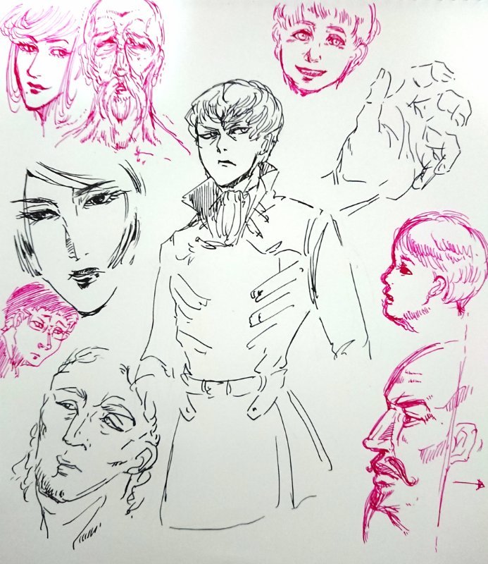 万年筆インクでイラストを描く時は基本的に水筆は使わないのですが、水でぼかすと面白い効果が出たので水彩画風にしてみたりするのも楽しいかもしれないと思いました。同時に水張りはさぼってはいけないと心に誓いましたが。木製パネルも水張りテープも持っているのでやろうと思えば出来ますが、まともに水張りしたのは学生の時だった気が…雑録