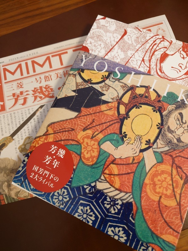 浮世絵中心かと思いきや肉筆画も充実し、師である国芳の作品も展示されていました。芳幾はいかにも国芳の本流を継いでいる印象でしたが、対する芳年は革新的で、影や皺の描き方は西洋絵画の影響を受けているようでした。個人的に好みなのは芳年です。鬼気迫るような血みどろ絵も好きですが、武者旡類のダイナミックな構図がとにかく凄い。