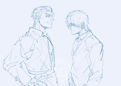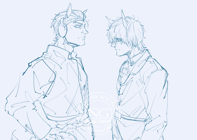フォロワーが書いてくれてる小説のファンアートです。まだ公開されてないけど進捗が送られてくるため萌え散らかしてチマチマ絵を描いてしまったのでここにまとめます。