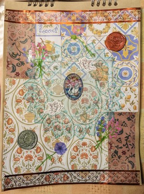 テストがてらにコラージュを始めたばかりの頃のを。コラージュは去年の1月あたりから始めました。当時まだ持っている素材の種類が少なかったのもあるけど、デザインと色の配置に手探り感がある(笑)