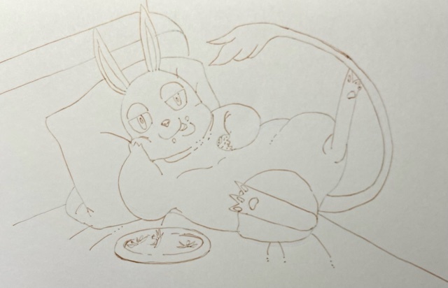 後から思ったけど、皿をもっとデカく描いたほうがよかった…!だがしかしもう遅い…!
