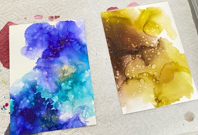 20250517(土)18:24今度友人が家に遊びに来るんですが、その時にアルコールインクアートをお試しでする予定なので、当日うまくお手本を見せられるように予行練習で描きました。