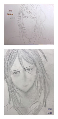加賀見朔を知った1月の初描き朔と最近描いた朔でした