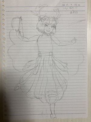 Sky衣装、シンプルなのに可愛いんですよね……たまに描いては上手く描けなくて毎回難儀してるけどめっちゃ大好き……