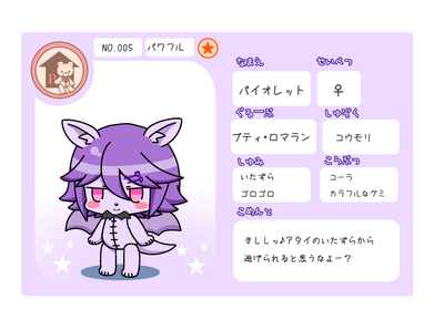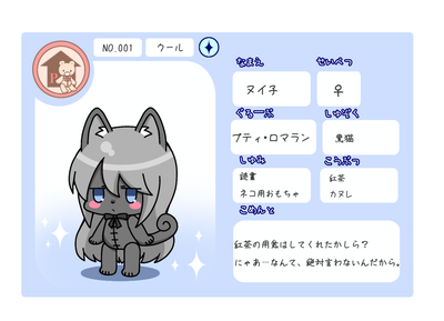プティ・ロマランのヌイカ(ぬい達の自己紹介カード)一覧。
