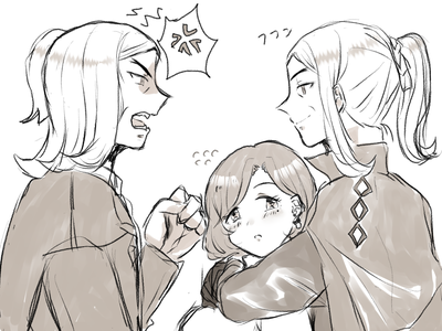 長になった世界線のハッサクさんとハッサクさんにサンドイッチされる設定。