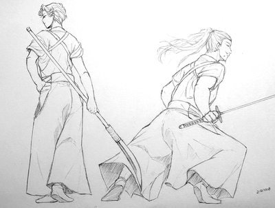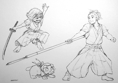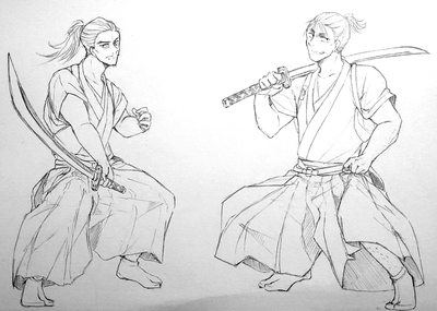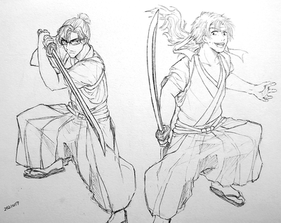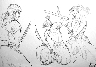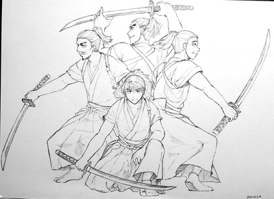 趣味絵ですが、忍術学園教師全員に殺陣の格好してもらいました。
