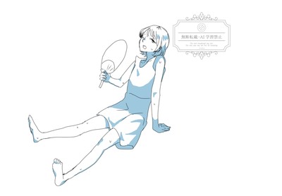 座る+うちわであおぐ