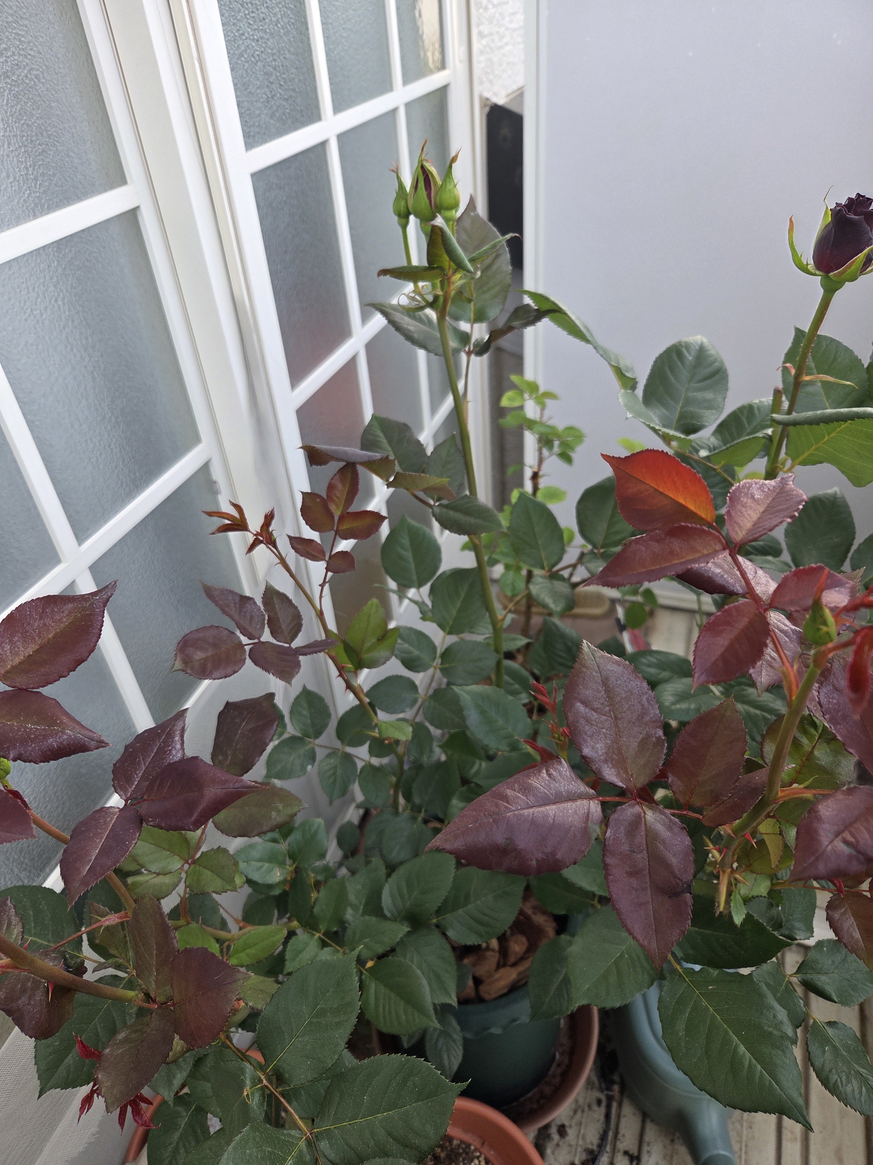 2025/05/01 07:19ぶーちゃんは新芽が赤いタイプなので紅葉みたいで綺麗だと思う