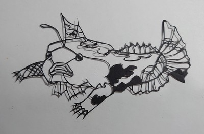 お魚なのに泳ぐのがとても苦手で、代わりに手足のように発達した胸ビレで海底を移動していました。また、アンコウの仲間なので頭に『エスカ』と呼ばれる疑似餌のような器官があるのも特徴です。