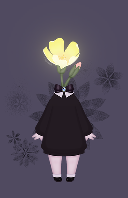 異形頭の子です。お花は自分で撮った写真をトレスしました。