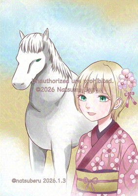 2026年午年の年賀イラストとして描きました。