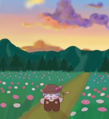 コスモス畑を笑顔でとてとて歩くのあたんです♪