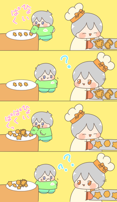 クリスマスの準備でジンジャークッキーを焼くパティシエのあたん♪