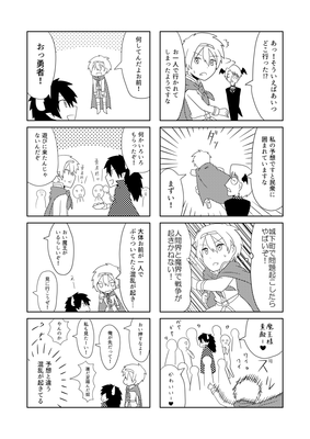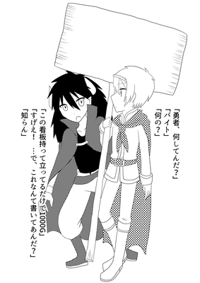 1ページ目は部誌の中表紙で、勇者が持っている看板に部誌タイトルが載っていました。