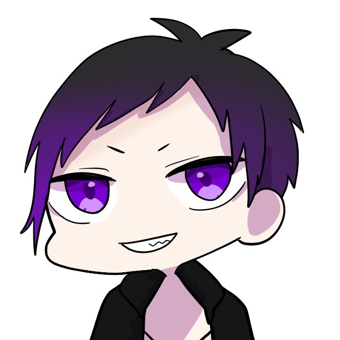 髪の色はねー、黒髪ーだけどー、先っちょが紫がかってるかな?