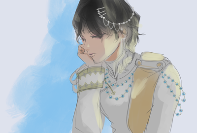 1時間程で描いた絵なので色々と拙いのですが、ヘアアクセサリーのデザインは気に入っています。