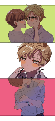 弘樹ってさっぱりしてるし、まもひろが付き合っても多分最初のうちは守のほうが気持ちが大きいしスキンシップとかもあんまり取らないと思うんだけど、付き合ってるうちに同じ重さになってきて弘樹から守にキスしようとするのがいいんだよな〜(幻覚)の、絵です