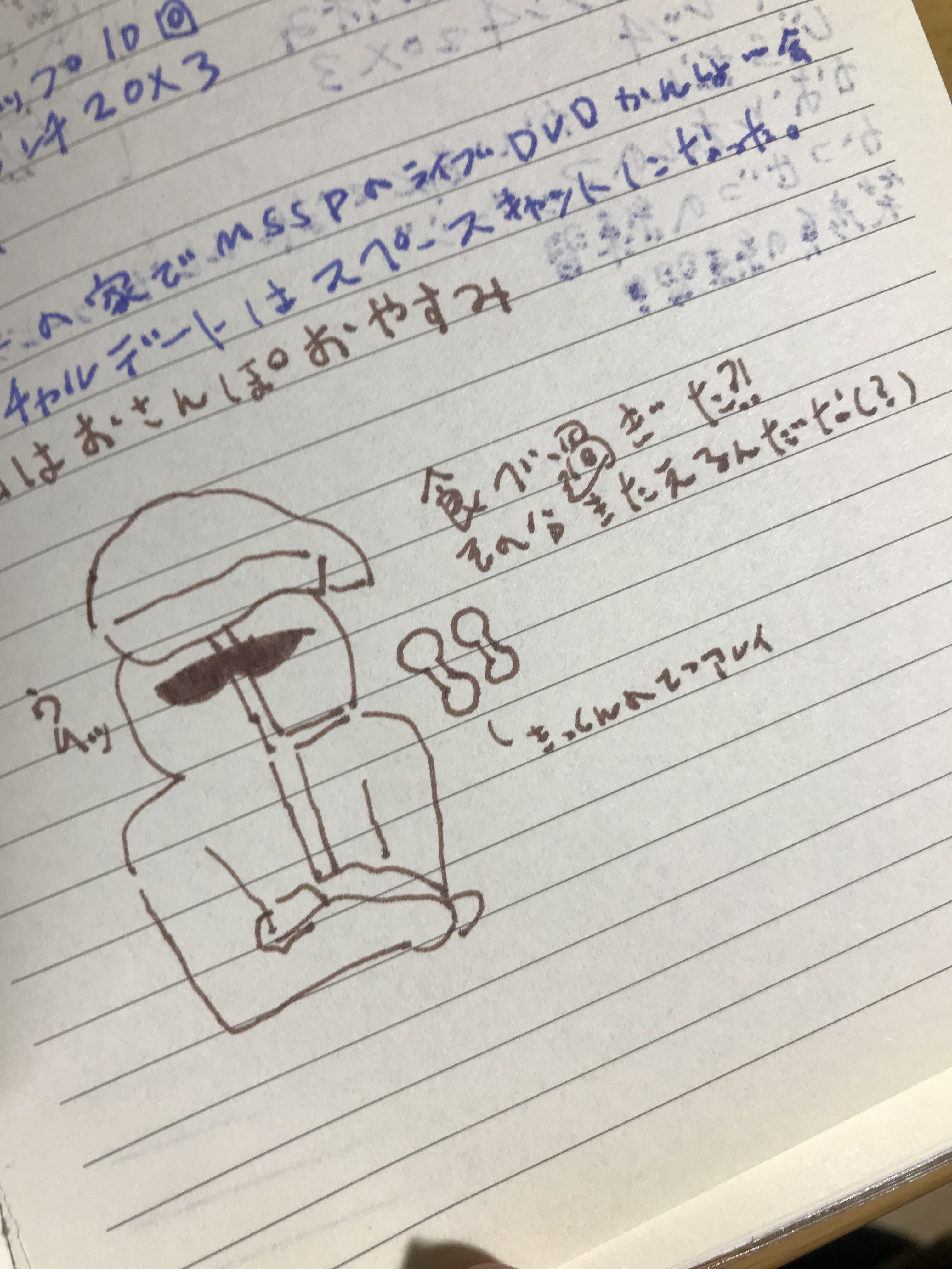 この筋トレもノートにメモっとくんですが毎ページ落書きとコメントも添えてます