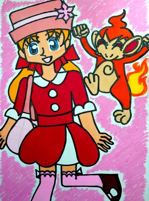 前のニンテンとポッチャマに続いてもしアナがポケモントレーナーだったら、というコンセプトでアナとヒコザルです。