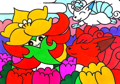 ポケモンの絵が描かれたマンホール蓋『ポケふた』の北海道木古内にあるロコンとアローラロコンとヒメンカのポケふたのイラストを模写してみました。