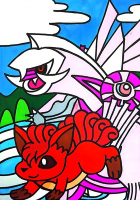 ポケモンの絵が描かれたマンホール蓋『ポケふた』の北海道斜里町にあるロコンとパルキアのポケふたイラストを模写してみました。