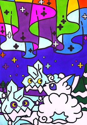 ポケモンの絵が描かれたマンホール蓋『ポケふた』の北海道陸別町にあるアローラロコンとカチコールのポケふたイラストを模写してみました。