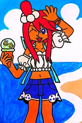 フウロが手に持っているアイスはポケモン×サーティワンアイスクリームコラボの『31ポケ夏!キャンペーン!』限定フレーバー『ピカチュウ トロピカソーダ』です🍨