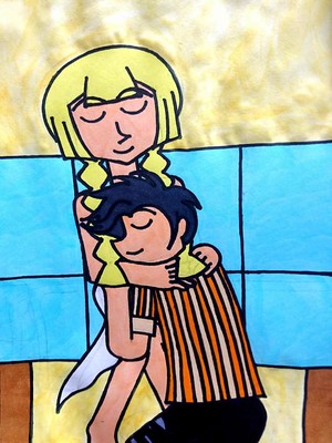 結婚後のヨウとリーリエのイメージで描いてみました〜、大人になったイメージを表現したくてヨウの髪型、リーリエの髪型を変えてみました。そしてヨウの髪型はソフトリーゼント、服装はオレンジのストライプボタンシャツと7ぶたけデニムジーンズとゲームで再現出来る服装です(笑)