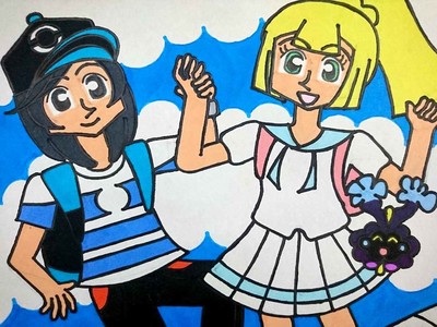 とにかく明るく元気いっぱいなヨウとリーリエを描きたくてその結果思いきりジャンプしているという構図になりました、そんなヨウとリーリエに影響されてにっこり笑顔なコスモッグことほしぐもちゃんもポイントでしょうか。