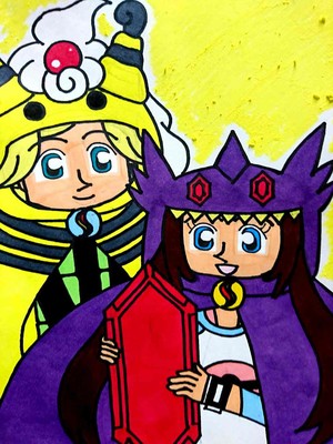 ポケモンセンターオリジナルぬいぐるみのピカチュウが着ていたメガヤミラミのポンチョを着たメイとメガデンリュウのポンチョを着たテツです♪私の設定ではメイもテツもメガシンカが使えてメイの手持ちのメガシンカ枠はテツから交換で貰ったヤミラミでテツの手持ちのメガシンカ枠はメイから交換で貰ったメリープが進化したデンリュウなんですよ。